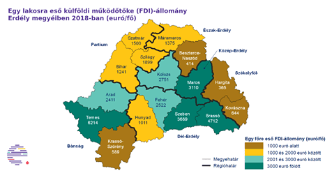 Az utóbbi években a romániai külföldi működőtőke-állomány értéke folyamatosan növekedett – hívja fel a figyelmet az Erdélystat elemzése. 2018-ban közel 19 milliárd euró volt Erdély FDI-állománya, míg a havasalföldi és moldvai FDI-állomány csupán 13 milliárd euró volt, ami tovább rontja a Regát helyzetét, hogy ebből szinte csak a fővárosba áramlott a külföldi tőke.